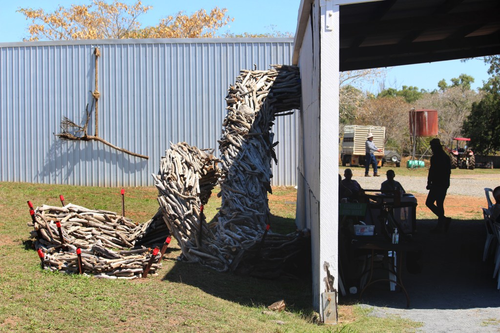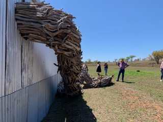 Ten found object abstract sculptures were presented on a 1.5 km trail around the sheds, dry creek and local paddocks.