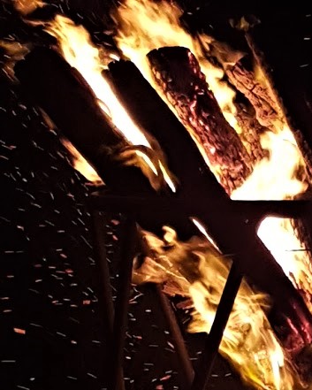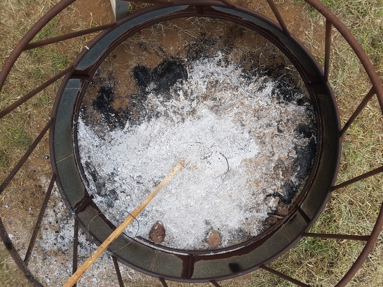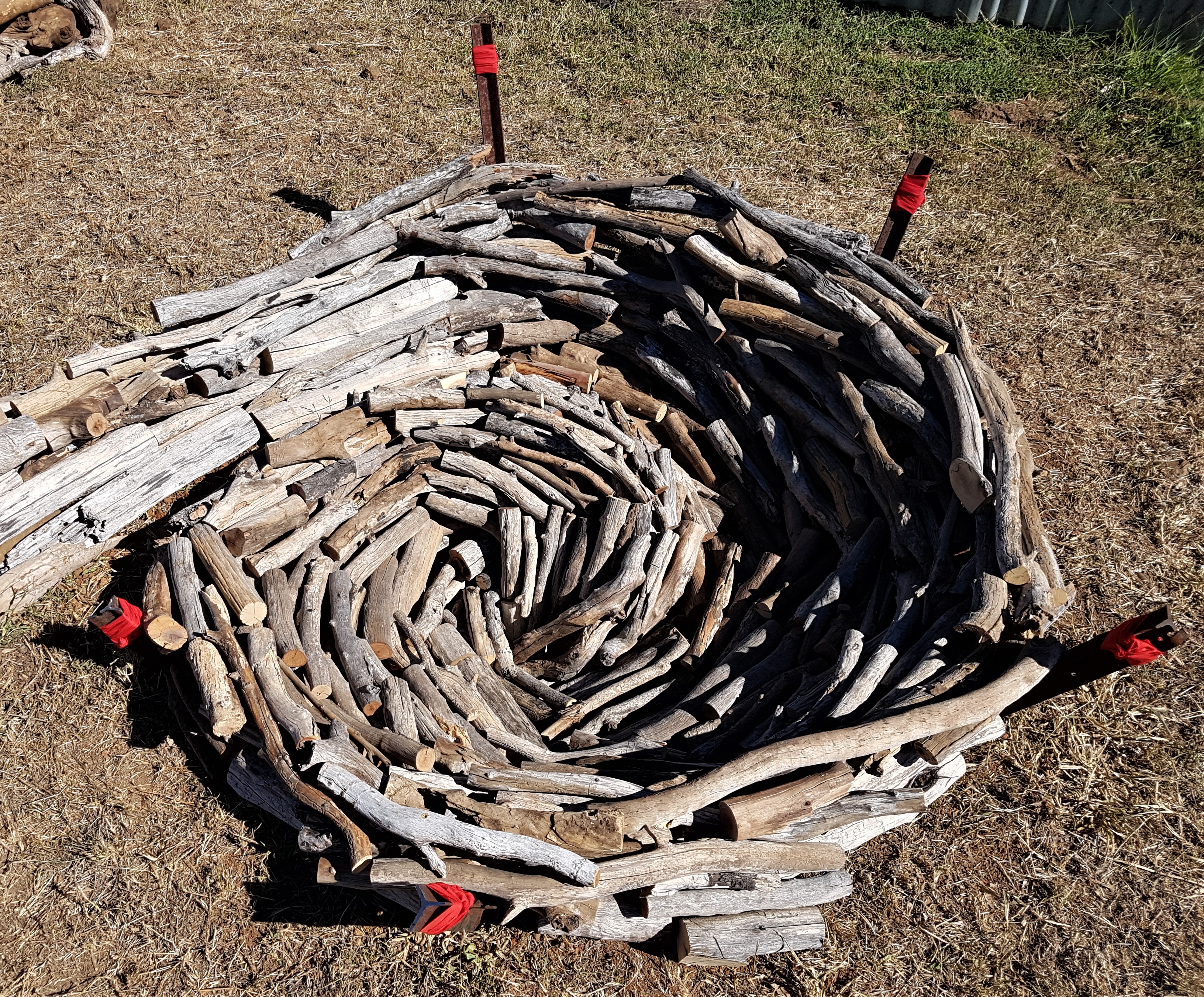 I took an old hay bale cattle feeder & secured semi-burnt logs from a previous bush fire in the centre. I was filmed igniting it on dusk & the subsequent burn was dramatic.